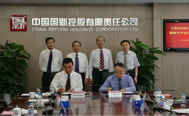 2017年5月27日,中国有色矿业集团有限公司(简称中国有色集团)与中国国新控股有限责任公司(简称中国国新集团)在京签署战略合作协议。中国有色集团总经理、党委书记张克利,中国国新集团董事长、党委书记刘东生出席活动并座谈。中国有色集团总会计师武翔、中国国新集团总会计师刘学诗代表双方在协议上签字。