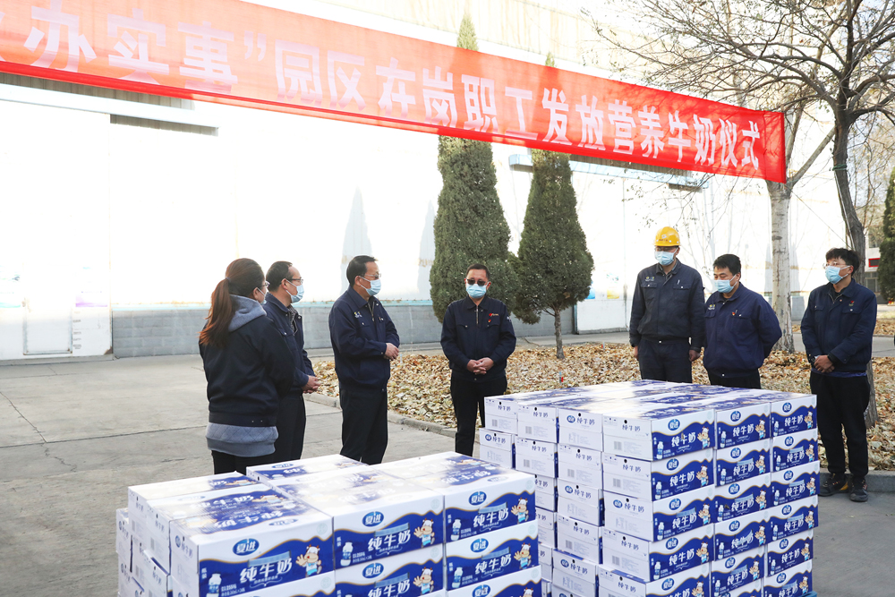 集团公司为园区在岗职工发放营养牛奶