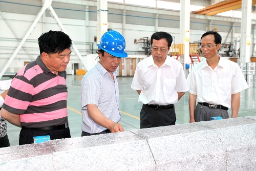 许树森先后参观了12000吨太阳能硅片用高强切割线项目、东方南兴公司、特材分公司、集团公司展厅、三分厂、铍铜分公司、钛材分公司等单位。每到一处,他都详细了解原料保证、市场形势、生产经营、项目进展等情况。看到新产业区一座座拔地而起的厂房、公司厂区内陆续建成的新产业、纵横通畅的厂区道路及布局美观的绿化环境,许树森副书记连连称赞。