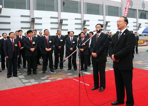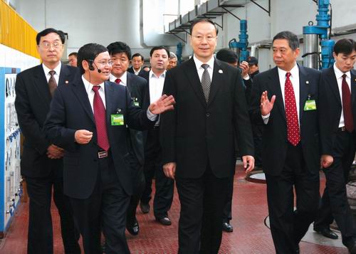 走出钽粉生产车间,杜青林代表中央代表团为集团公司赠送了慰问品,并作了重要讲话。他说,我代表中央代表团对大家表示衷心的感谢。中色东方集团公司具有重要的战略地位和十分重要的作用,为国家做出了重要的贡献,是世界钽冶炼加工三强企业之一,是我国唯一的铍材研制加工基地。集团公司在改革发展中积累了许多宝贵经验,为国家的现代化建设,特别是航空、航天等军工事业的发展做出了重要贡献。你们企业的发展前景广阔,你们要进一步贯彻落实科学发展观,在坚持企业的科技创新、自主创新方面再做出更大的贡献。希望中色东方集团公司能够真正成为新材料产业的重要基地,成为一流的国际企业,在科技创新、制度创新方面提供更多新的经验。