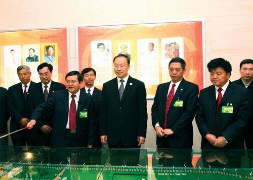 展厅内,中央代表团成员的视线被那一幅幅诉说企业发展历程的新旧照片,一件件公司自主研发生产的钽、铌、铍产品样品,一张张见证了集团公司为祖国国防军工事业做出突出贡献的荣誉证书、奖牌、奖杯所吸引。杜青林一边仔细观看展览,一边认真听取集团公司总经理钟景明就企业发展历程、主导产品钽、铌、铍的市场份额、性能和用途等情况的介绍,并对集团公司做出的成绩给予了充分肯定。