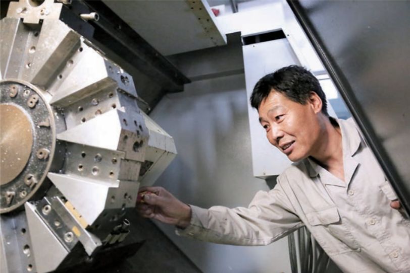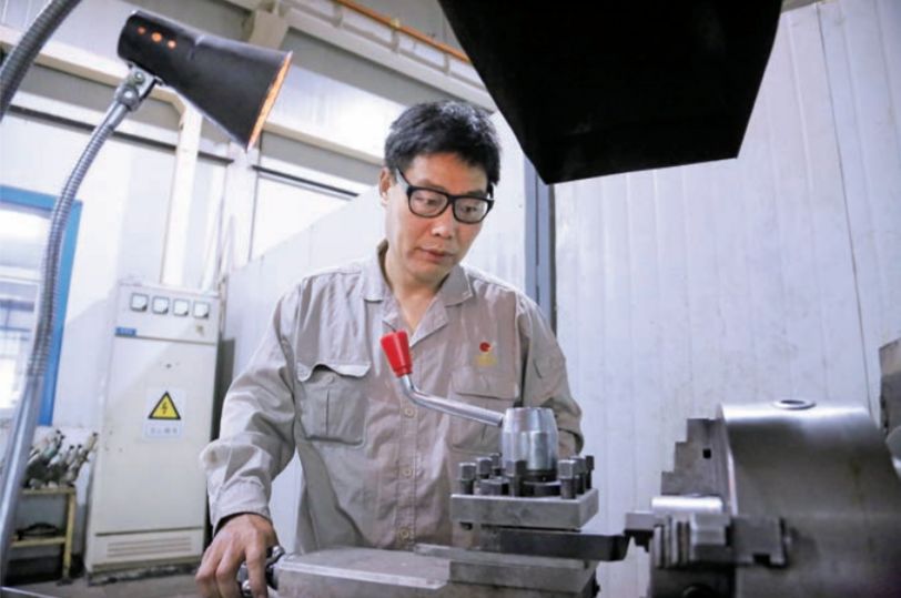 2014年,分厂引进一批数控车床, 面对从来没有接触过的新车床,郭从喜一切都得从头开始学,这对当时 45 岁的郭从喜来说,是个非常大的挑战。然而他凭着一股“勤奋好学,不耻下问” 的精神,在很短的时间内就掌握了数控车床的编程,学会了软件绘图。