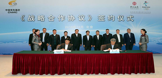 2019年12月30日,中国有色集团董事长、党委书记王彤宙率队前往中国银行总行大厦,与中国银行董事长、党委书记刘连舸举行会谈,双方就进一步加强合作,强化优势互补,深化务实合作,进行了深入交谈,达成广泛共识,并共同见证了双方战略合作协议的签署。中国有色集团安宜总会计师与中国银行林景臻副行长代表双方签署协议。