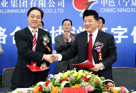 4月26日上午,集团公司与青铜峡铝业集团公司在银川签署了战略合作协议。此次战略合作,双方将建立长期、稳定的战略合作关系,以加强在产业、战略、人才、技术等方面的合作,特别是在融资担保、氟化铝产品供应与保障等方面更具有实质性的意义。