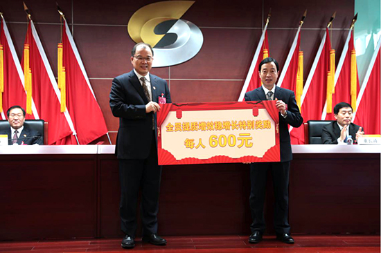 集团公司积极响应,统筹谋划,本着“发展为了全体职工,发展依靠全体职工,发展成果由全体职工共享”的理念,第一时间向职工传达中国有色集团相关文件精神,计划春节前向全体职工发放“提质增效稳增长特别奖励”。