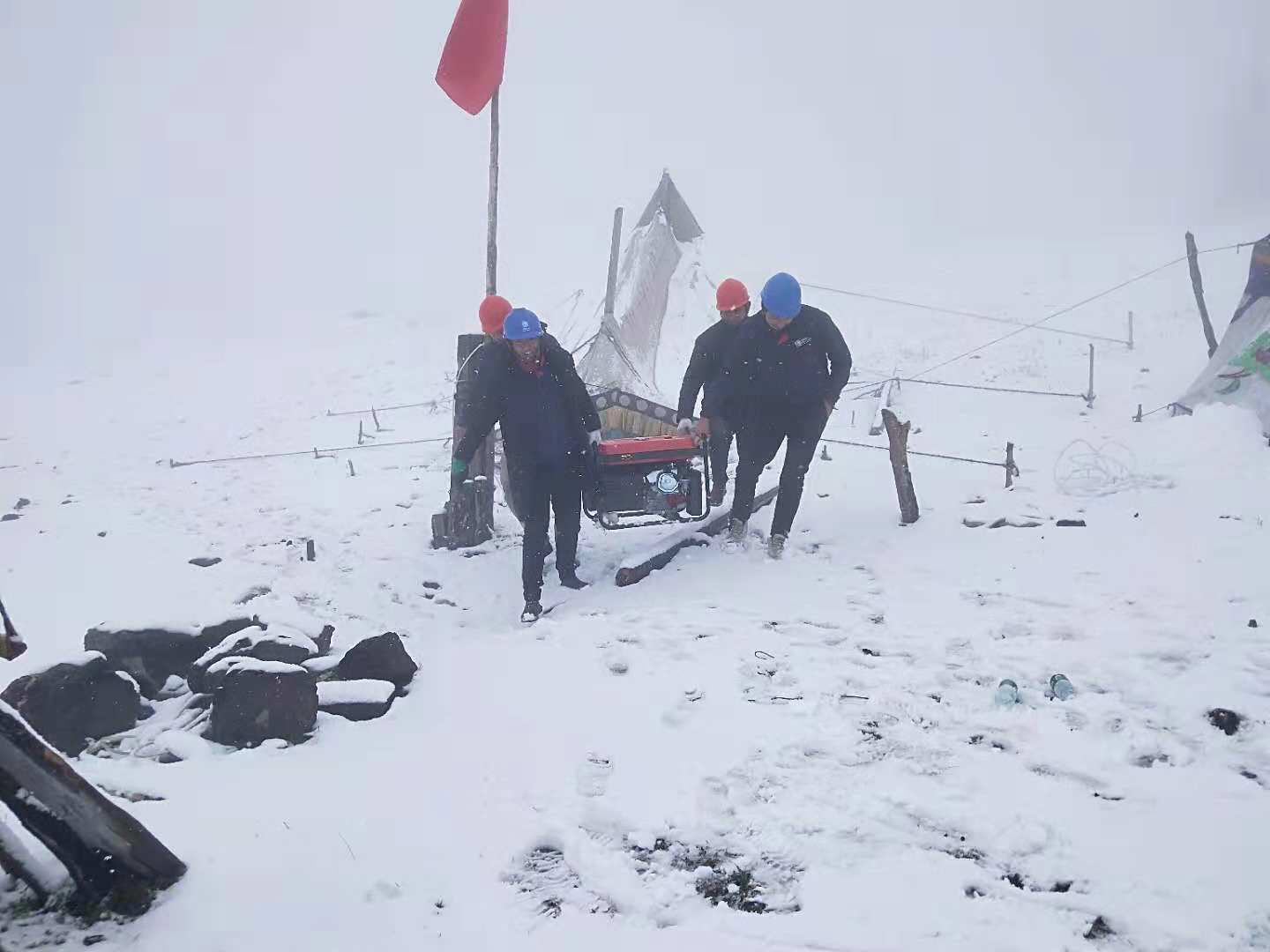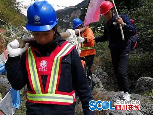 12日8时30分,一支由国网甘孜供电公司12名电力员工组成的电力应急保障先遣队出发前往位于绒盖乡则巴村的政府前线指挥部,为抢险指挥提供电力保障,中午时分抵达则巴村。由于险情发生地地处峡谷,剩下的路只能徒步前往。13时30分,6名抢险队员在当地村民的带领下,通过肩挑背扛的方式带上1台重约100斤的3千瓦的发电机和10公升备用油料以及应急照明灯等其他应急物资急速奔赴金沙江堰塞体前沿观察点。直到21时09分,经过7个多小时的爬山涉水后,电力抢险队员抵达金沙江堰塞体前沿观察点,并立即展开应急照明线路铺设工作。据悉,金沙江堰塞体前沿观察点海拔3750米,电力应急抢险人员从位于则巴村的前线指挥点到堰塞体观察点需要翻越3座海拔约4500米的高山。在翻越最后一座山时,由于没有路,抢险队员们只能靠自己在灌木丛中开辟道路,发电机只能轮流背着前进。
