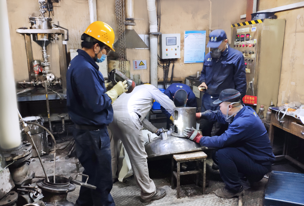 近日,粉体分厂制粉组2号反应釜联轴器出现故障,影响设备正常运行,班组第一时间上报并联系机电维修分厂进行抢修。