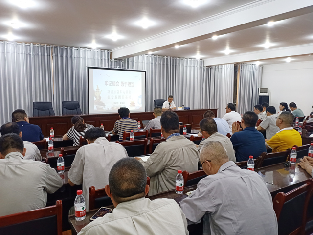 赵文通以《牢记使命,勇于担当,巩固加强东方钽业扭亏脱困的基础》为题,围绕“如何理解‘不记初心、牢记使命’?”“不忘什么初心?”“牢记什么使命?”“何为担当?”“主题教育的落脚点在哪?”等五个问题,对党中央开展主题教育的背景,总体要求,结合党的历史和企业的发展历程,为东方钽业领导干部上了一堂生动的党课。