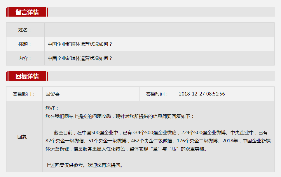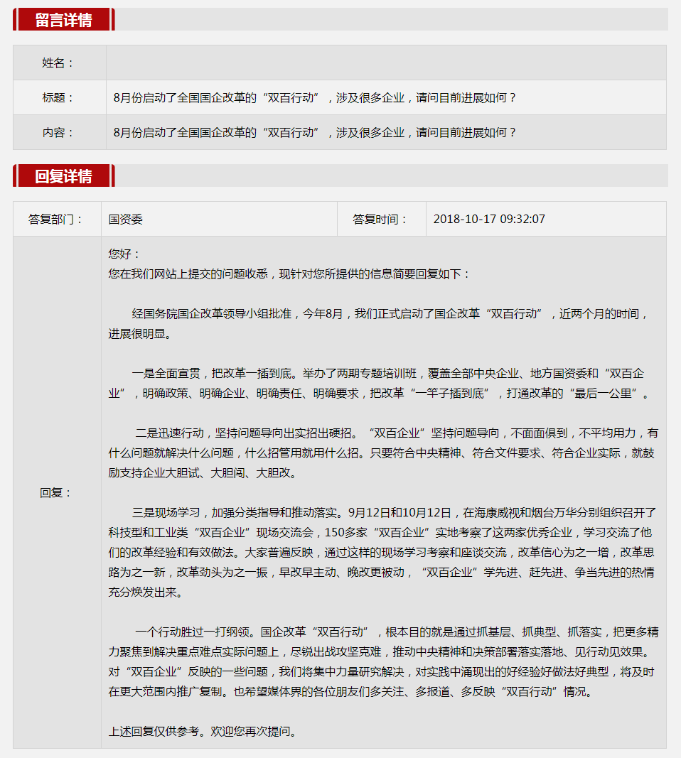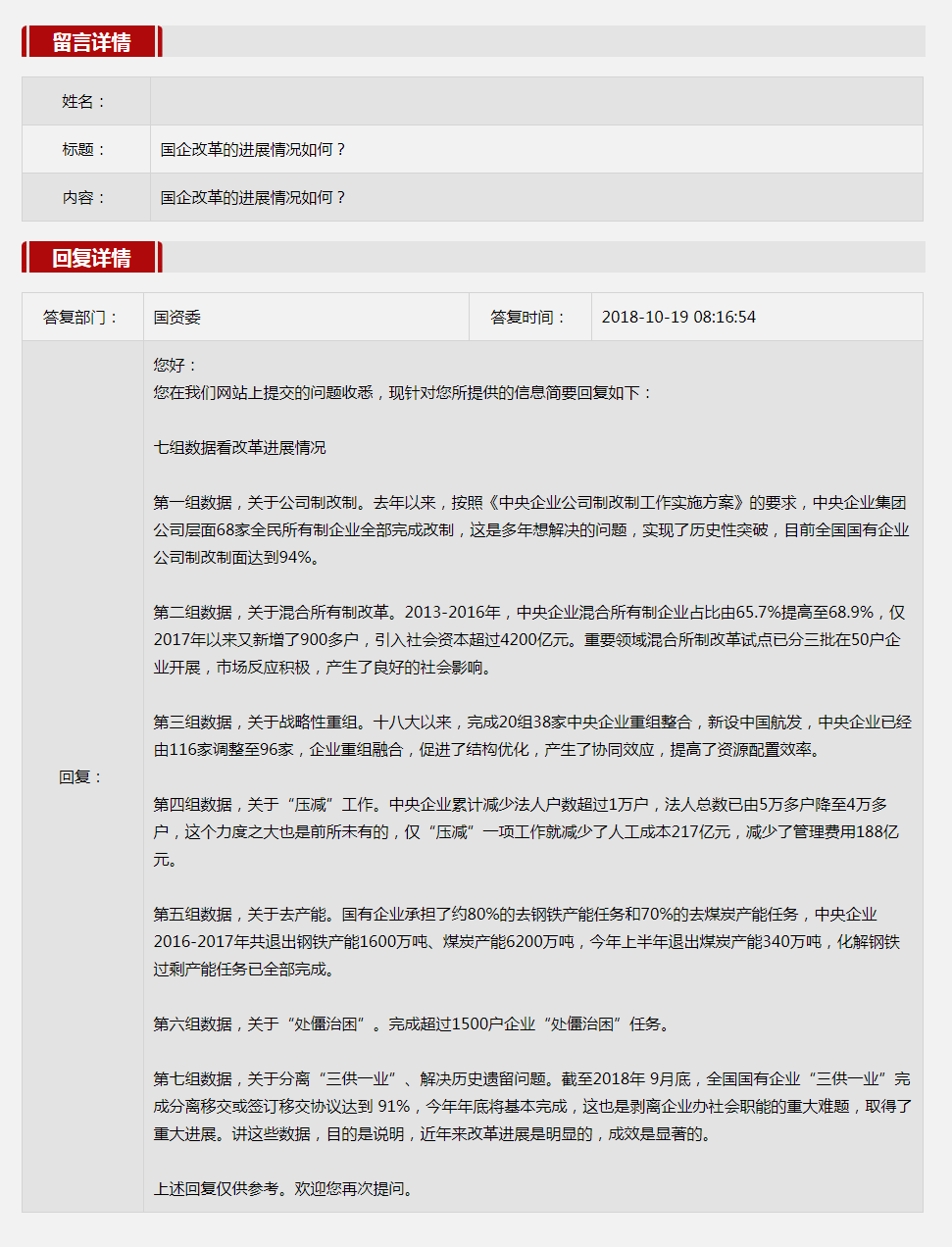2018年第四季度国资委网站五大网友互动热点话题出炉-国务院国有资产监督管理委员会