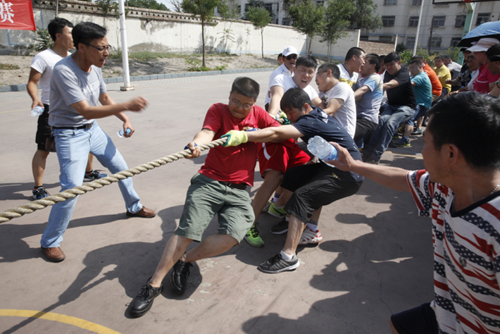 6月27日,盛夏的骄阳炙烤着大地。中色东方集团公司多功能馆旁的球场上,“加油,加油”的呐喊助威声一浪高过一浪,参加拔河比赛的队员们个个卯足了劲儿,奋力拉拔,现场紧张激烈的气氛,犹如烈日下蒸腾的热浪,火辣辣的。这是中色东方建厂50周年职工运动会赛场一角。