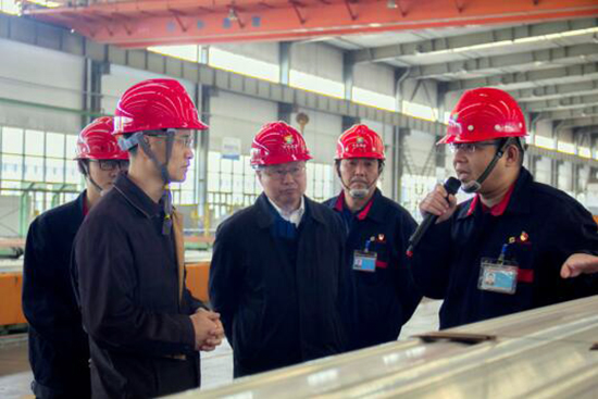 原广丰一行参观了中色特材公司展室,了解企业主要产品、市场客户等情况,实地考察了铝挤压熔铸分公司、铜加工分公司、铝深加工分公司生产现场,三家分公司党支部书记结合生产经营实际,对扎实开展第二批主题教育、推动“四个落地见效”的做法和成效进行了详细汇报。