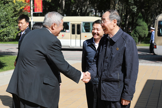 尤权书记与钟景明董事长握手