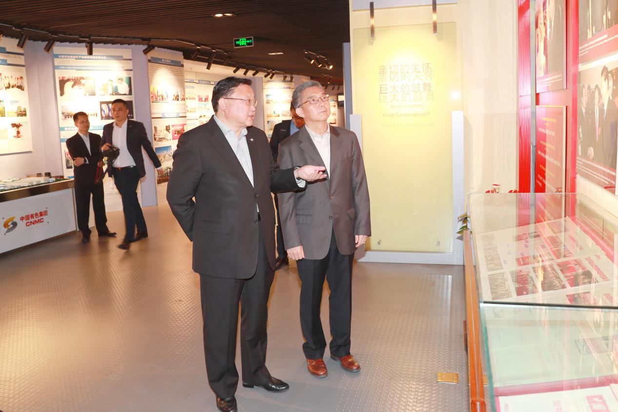 会谈前,王彤宙董事长陪同贺禹董事长一行参观了中国有色集团展厅。