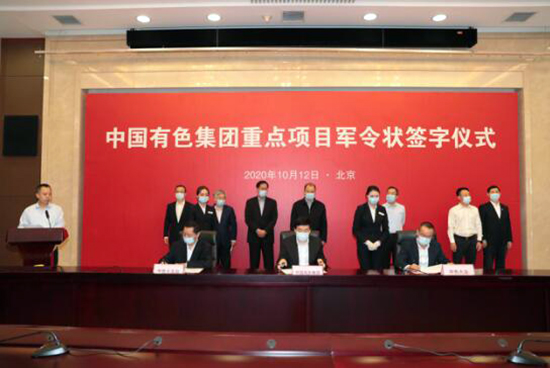 2020年10月12日,中国有色集团在京举行重点项目军令状签字仪式。集团党委书记、董事长奚正平出席仪式并讲话,董长清总经理代表集团与中色大冶、中色股份、中色十五冶、中色非矿、刚波夫矿业等5家出资企业签署了4个重点项目的军令状,签字仪式由范巍副总经理主持。