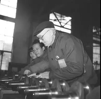 格里希厂长在武汉柴油机厂加工车间检查零部件质量。新华社资料图片