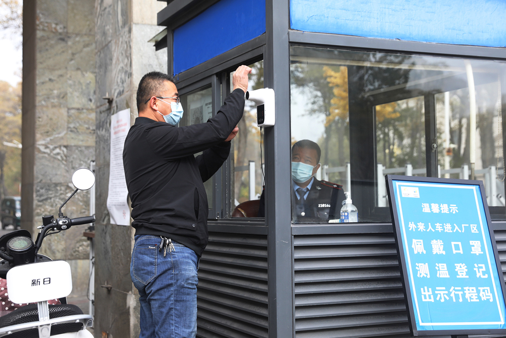 各单位在入口配备测温设备,做好人员测温登记,加强办公区和生产场所的通风和消杀工作,确保消毒防疫工作做细、做严、做实。厂区所有门岗加强管控,严禁外来车辆和人员进入,对于集团内部的检查、送货、维修等人员,严格执行测体温、亮码、查验48小时核酸检测报告、登记等程序,确保底数清、路径明、可追溯,并对入厂车辆做好消毒消杀工作。