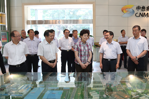 在集团公司展厅,咸辉听取了公司董事长、党委书记钟景明关于企业发展历程、产业结构、产品种类、人员结构等情况的介绍。在产品陈列柜前,咸辉关切地询问公司的矿石来源情况,一边听取介绍,不时询问相关产品的性能、用途、市场等情况。