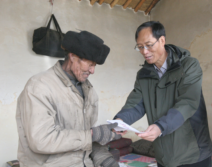 余春勇一行走进村民家,了解了他们的生产、生活情况,为他们送上了米、面、油,并为3户五保户送上了慰问金。余春勇鼓励村民,不要被暂时的困难吓倒,要以积极乐观的态度和辛勤的劳动,争取早日脱贫。